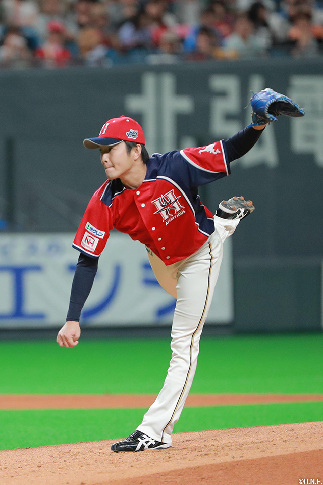 8番 清宮 投ゴロ 外角低めのチェンジアップを打つもピッチャーゴロ 2アウト |