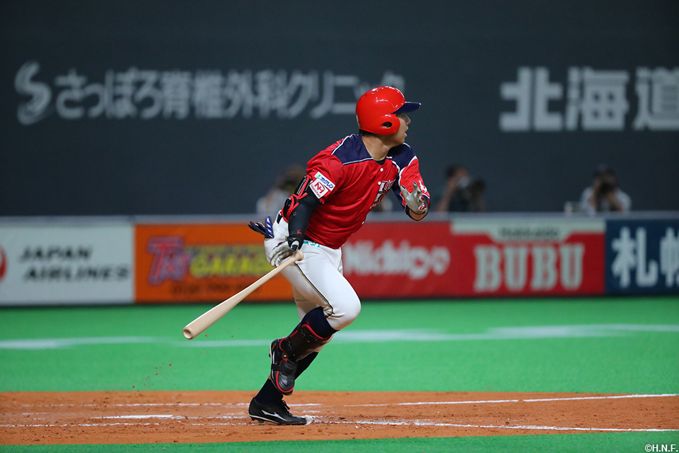 4番 中田 左飛 ランナー1,2塁 内角高めのフォークを打つもレフトフライ 1アウト |