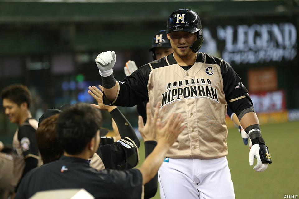 4番 中田 左本 ランナー2塁 カウント2-0から左中間へ2ランホームラン! 西0-7日 ![]() 0