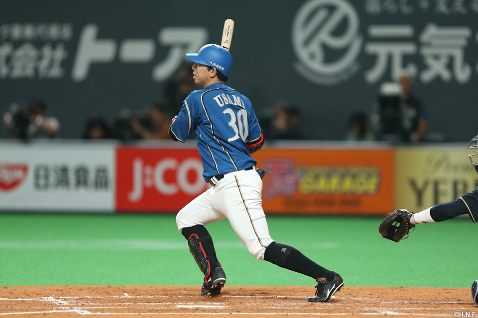 3番 吉田正 中2 低めのカットボールをセンターへ打ってツーベース 2塁 |