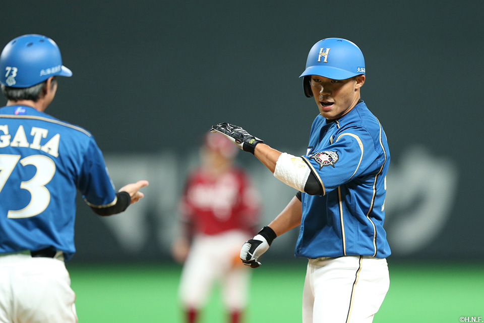 8番 横尾 左2 ランナー2塁 内角低めのカーブをレフトへタイムリーツーベース! 2塁 日5-1楽 ![]() 5