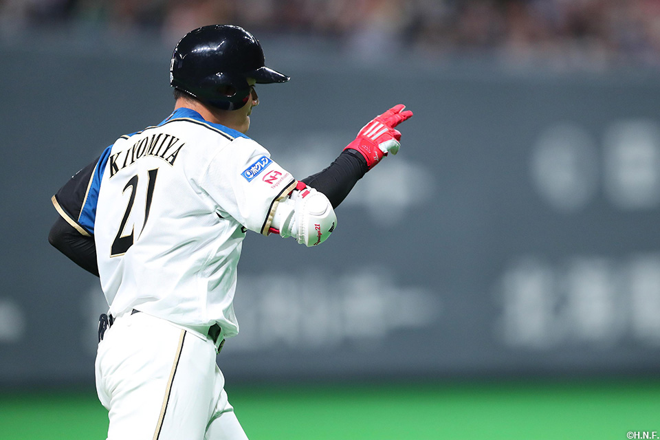 6番 清宮 右本 ランナー1塁 カウント2-1からライトスタンドへ2ランホームラン! 日5-0オ ![]() 5