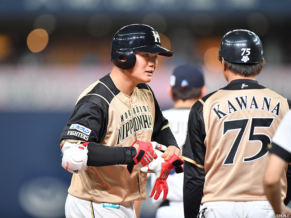 6番 清宮 左3 ランナー1,2塁 外角低めのフォークをレフトへタイムリースリーベース! 3塁 オ0-3日 ![]() 0