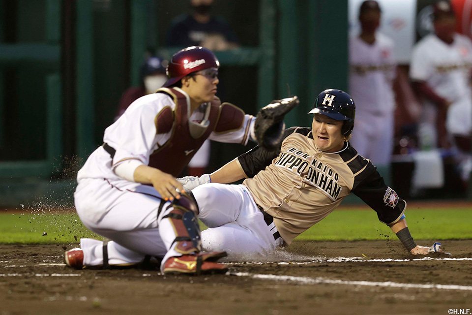 中田(一)の悪送球により進塁する 2塁 楽1-0日 |