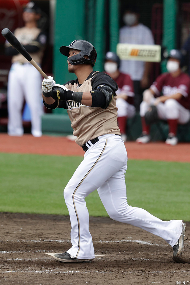 6番 杉谷 右本 カウント0-1からライトスタンドへ同点ホームラン! 楽1-1日 ![]() 1