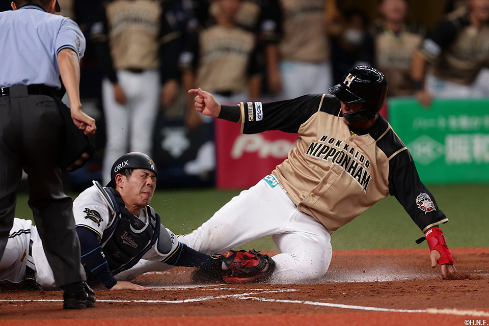 投手 公文 投手 生田目 守備変更:杉谷→セカンド 守備変更:松本→センター 守備変更:生田目→ピッチャー 日本ハムDH解除  |