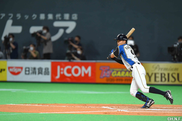 9番 中島卓也 中飛 ランナー1塁 ど真ん中のシュートを打つもセンターフライ 3アウトチェンジ  |
