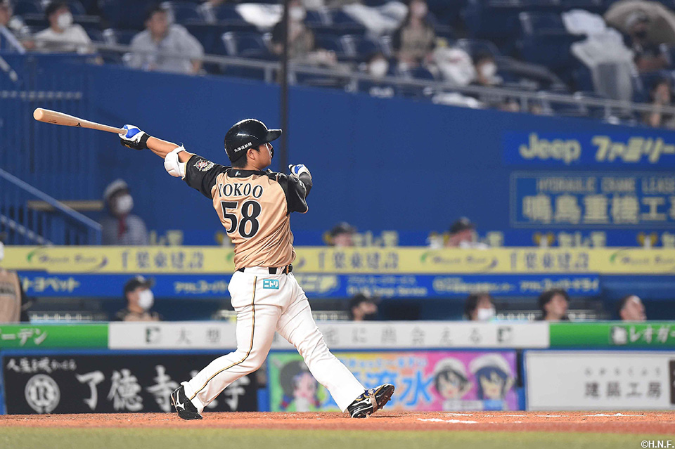 6番 横尾 左安 高めのストレートをレフトへ打ってヒット 1塁 |