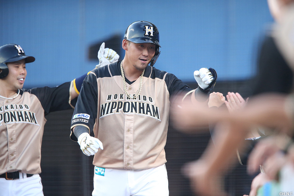 4番 中田 左本 ランナー1,2塁 カウント2-0からレフトスタンドへ逆転3ランホームラン! ロ2-3日 ![]() 2