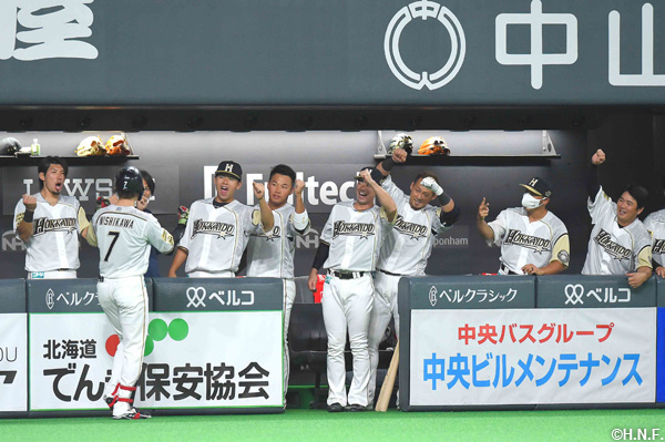 投手 西村 守備変更:松本→ライト 守備変更:杉谷→レフト 守備変更:清宮→ファースト 守備変更:淺間→センター 守備変更:石井→セカンド |