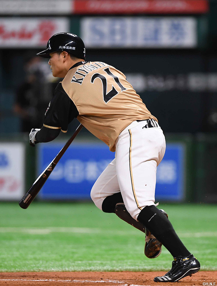 8番 清宮 右安 ランナー1,2塁 外角のストレートをライトへ打ってヒット  |
