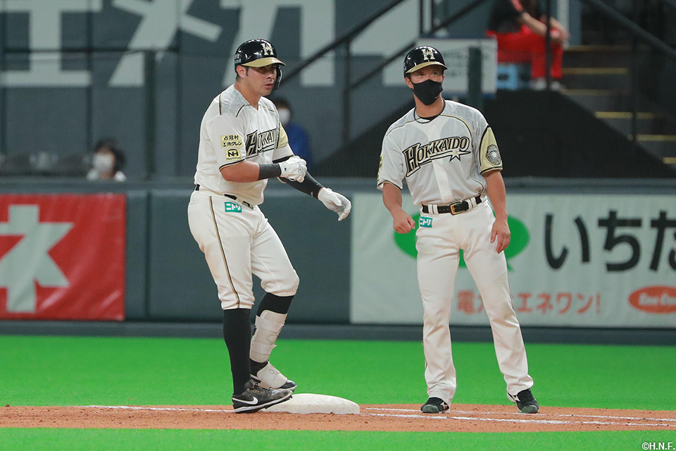 投手 東浜 4番 中田 左2 ど真ん中のシンカーをレフトへ打ってツーベース 2塁 |