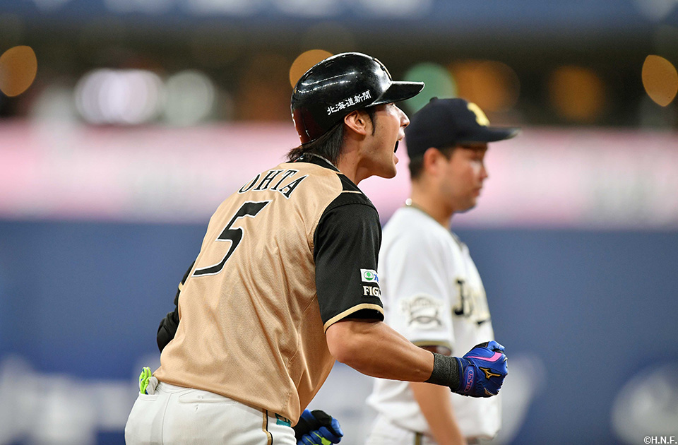 9番 若月 左安 ランナー3塁 低めのフォークをレフトへ勝ち越しタイムリーヒット! 1塁 オ2-1日 ![]() 2