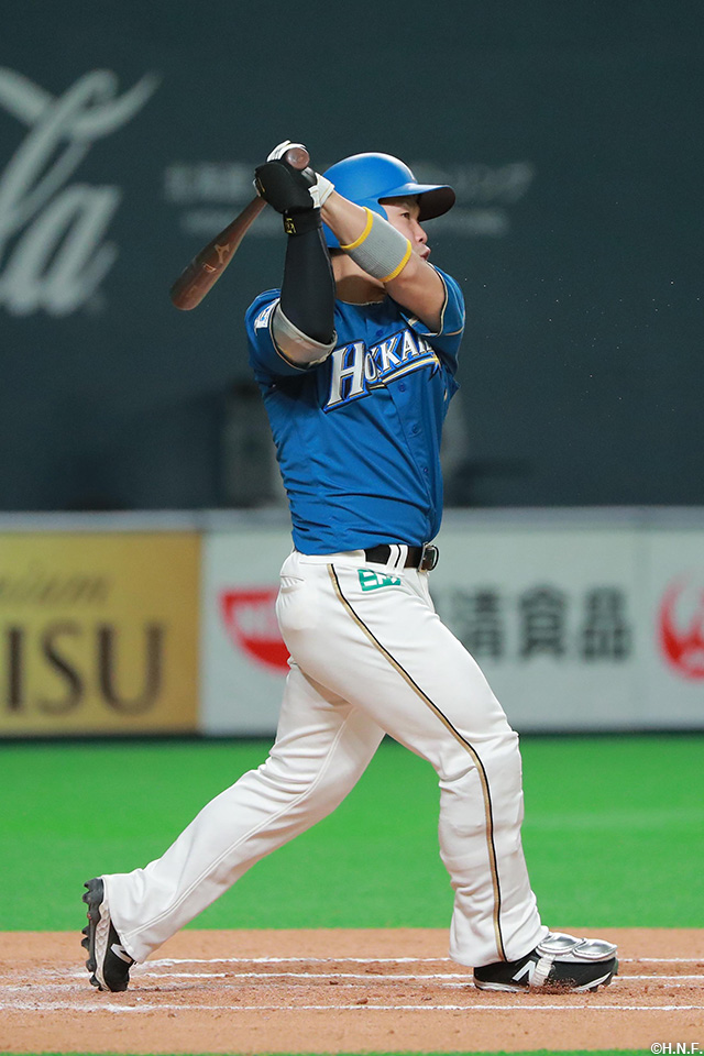 5番 大田 左安 ランナー2塁 150キロの低めのストレートをレフトへタイムリーヒット! 1塁 日3-6オ ![]() 3