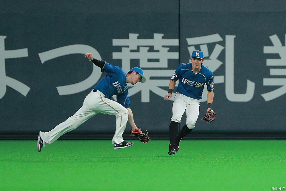 投手 増井 4番 中田 一邪飛 ファウルフライを大下(一)が捕球してバッターアウト 1アウト |