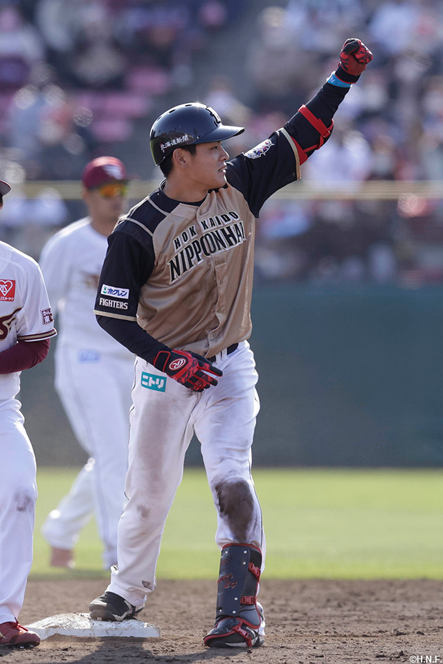 2番 松本剛 二飛 ランナー1,3塁 低めのスライダーを打つもセカンドフライ 3アウトチェンジ  |
