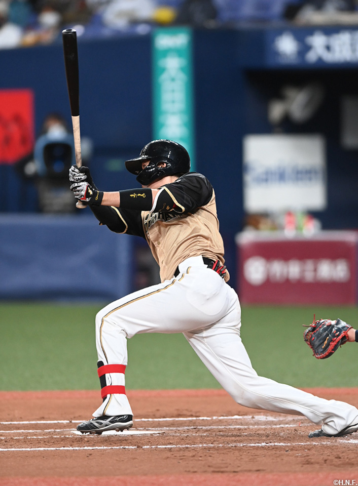 9番 紅林 左2 低めのフォークをレフトへ打ってツーベース 2塁 |