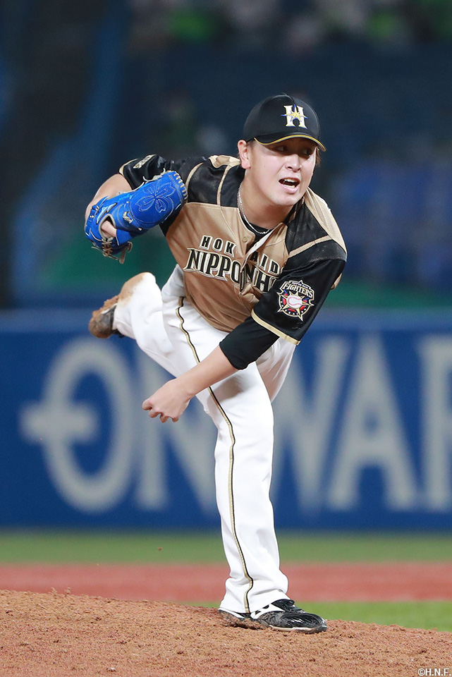 1番 五十幡 空三振 外角低めのフォークを空振り三振 1アウト |
