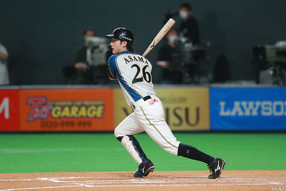 1番 淺間 右安 外角低めのチェンジアップをライトへ打ってヒット 1塁 |