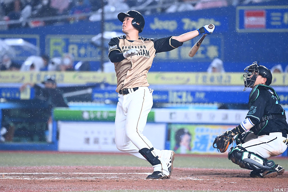 7番 万波 左安 低めのスライダーをレフトへ打ってヒット 1塁  |