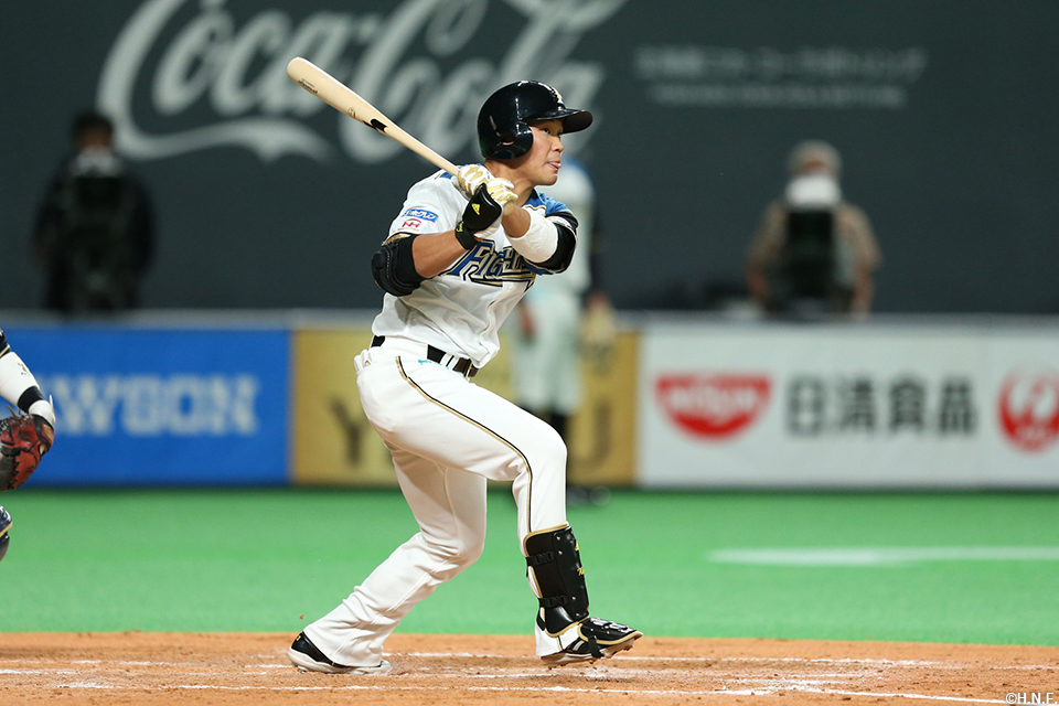 3番 吉田正 中安 外角のカットボールをセンターへ打ってヒット 1塁 |