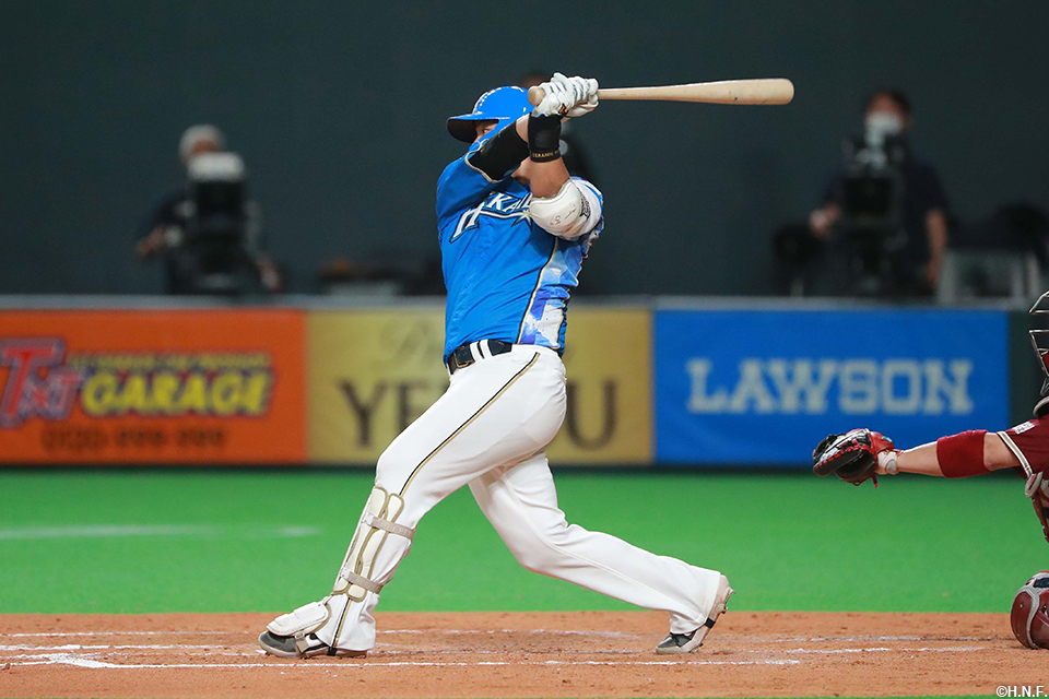 4番 近藤 中安 満塁 外角低めのスライダーをセンターへ勝ち越しタイムリーヒット! 1,2塁 日4-2楽 ![]() 4