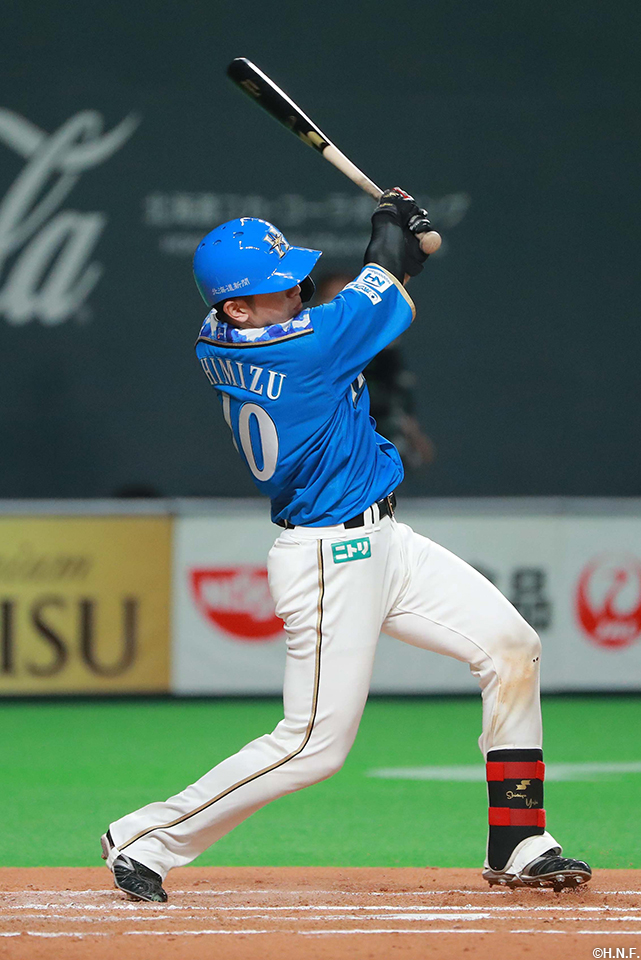 チーム初ヒットを放った清水選手