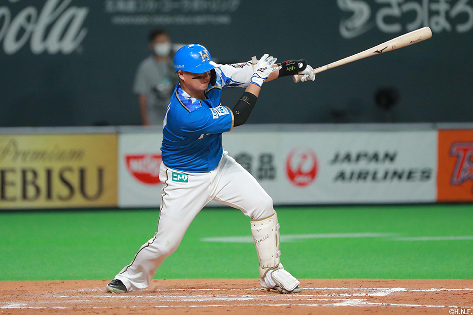 7番 高濱 三安 ランナー2,3塁 150キロの内角のツーシームをサードへ打ってヒット 満塁 |