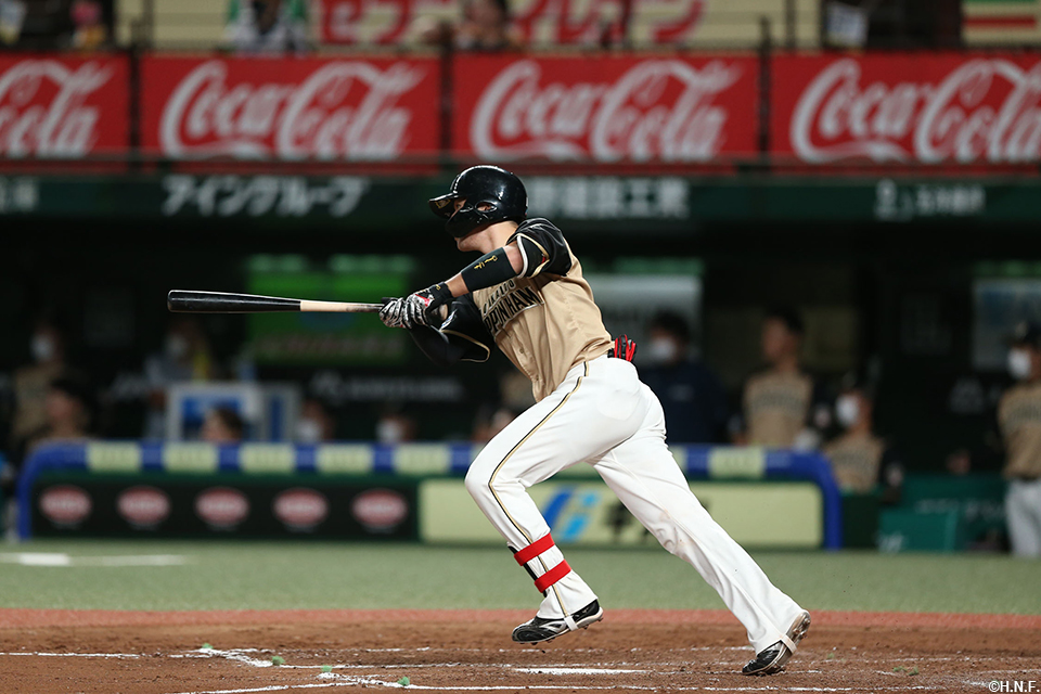 1番 松本剛 遊飛 ランナー2塁 内角低めのストレートを打つもショートフライ 3アウトチェンジ |