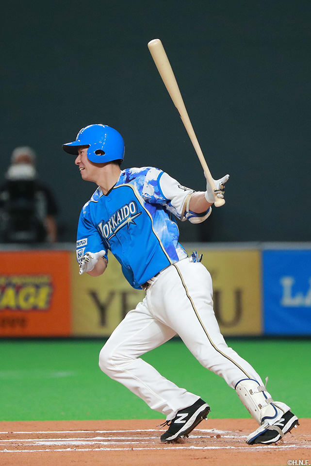 1番 松本剛 投安 高めのツーシームをピッチャーへ打ってヒット 1塁 |