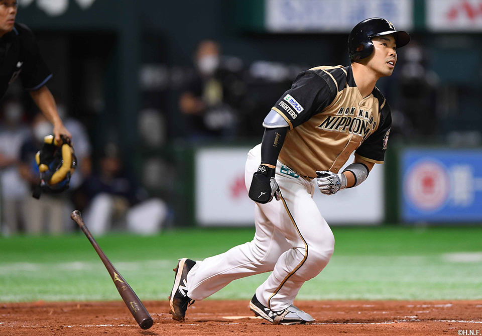 1番 松本剛 投安 高めのスライダーをピッチャーへ打ってヒット 1塁 |