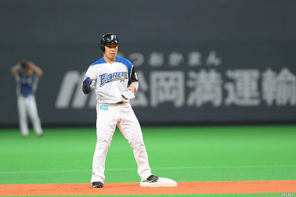 1番 松本剛 三安 低めのカーブをサードへ打ってヒット 1塁 |