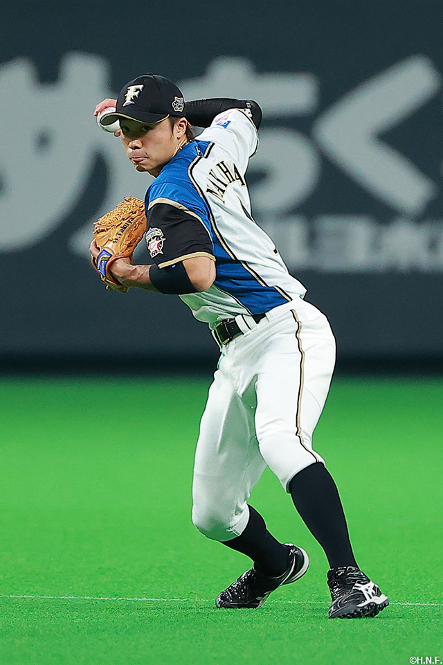 7番 万波 空三振 外角低めのカットボールを空振り三振 2アウト |