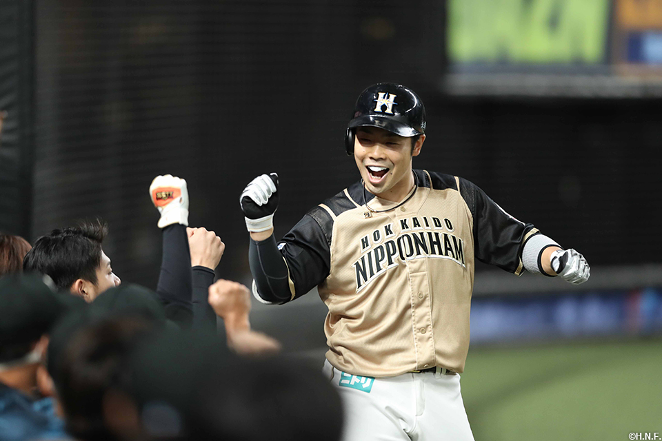 4番 近藤 左安 内角高めのカットボールをレフトへ打ってヒット 1塁 |