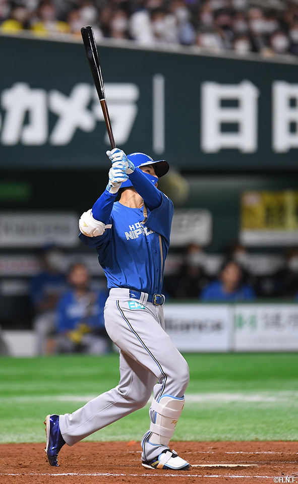 2番 松本剛 投ゴロ ランナー1塁 内角のシュートを打つもピッチャーゴロ 3アウトチェンジ |