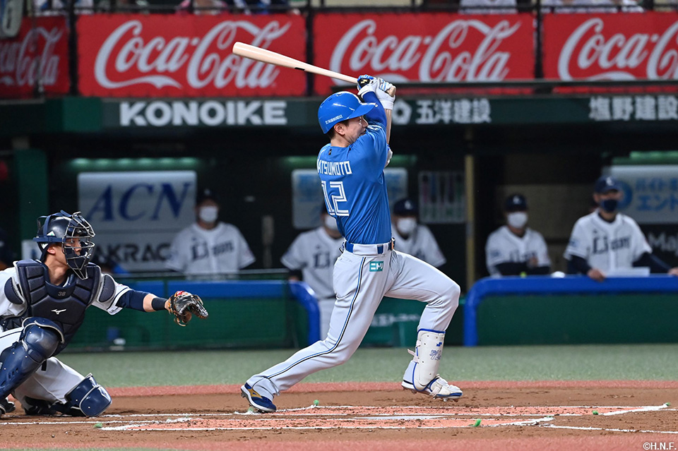 4番 松本剛 四球 フォアボールを選ぶ 1塁 |