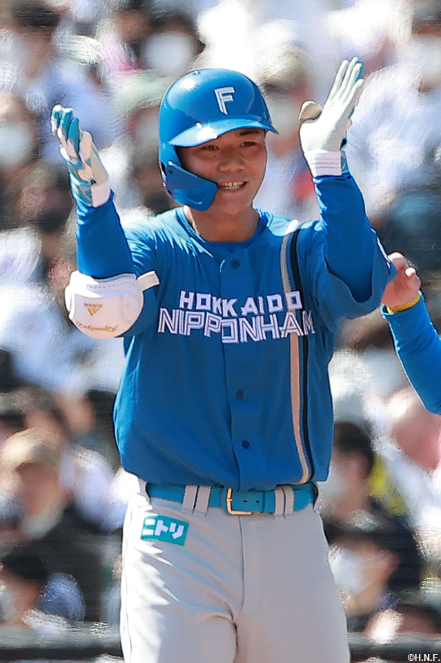 7番 清宮 右安 ランナー1,3塁 低めのシンカーをライトへ勝ち越しタイムリーヒット! 1,2塁 ロ1-2日 ![]() 1