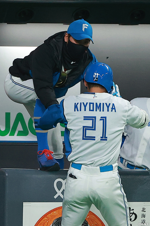 6番 清宮 空三振 外角高めのストレートを空振り三振 1アウト |