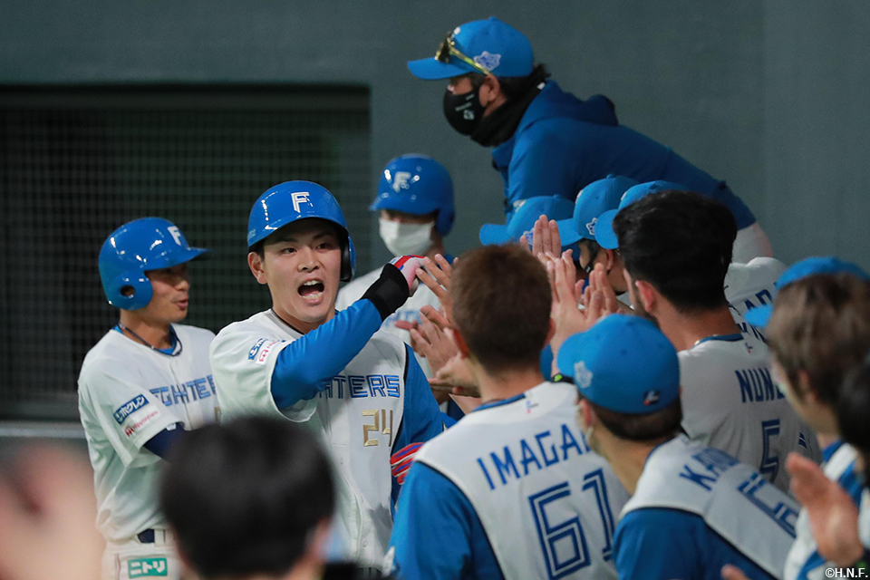 2番 松本剛 右安 低めのスライダーをライトへ打ってヒット 1塁 |