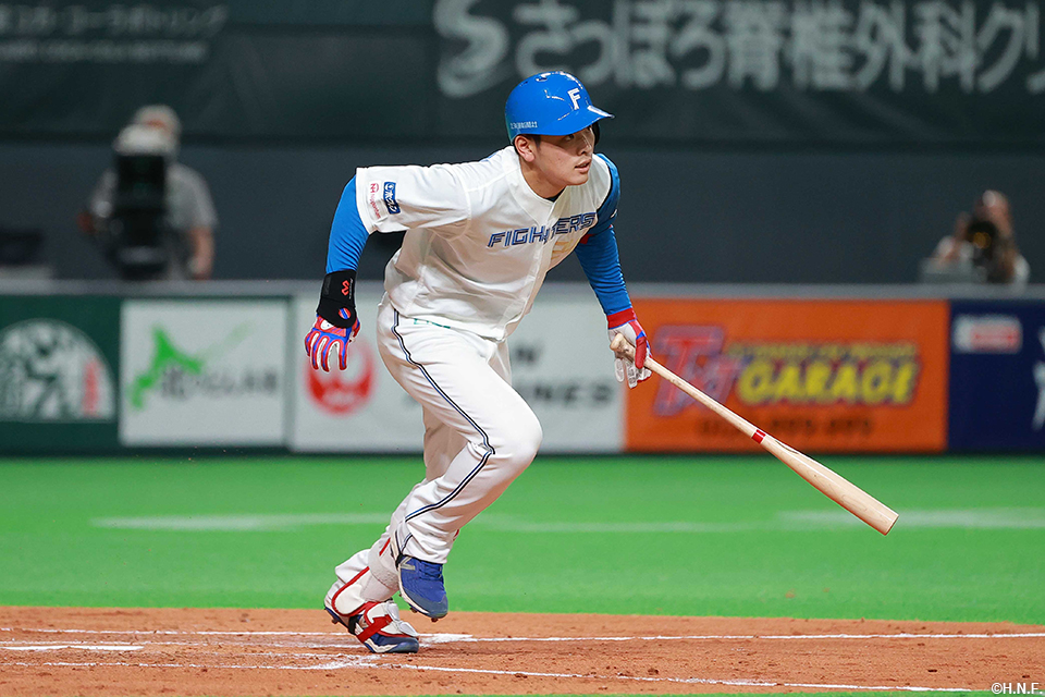 1番 松本剛 右安 外角低めのカーブをライトへ打ってヒット |