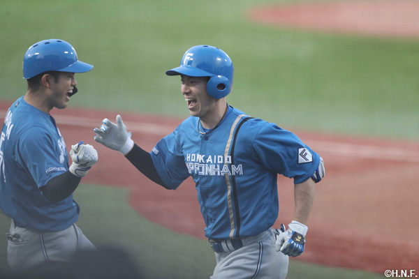 1番 松本剛 右2 高めのフォークをライトへ打ってツーベース 2塁 |