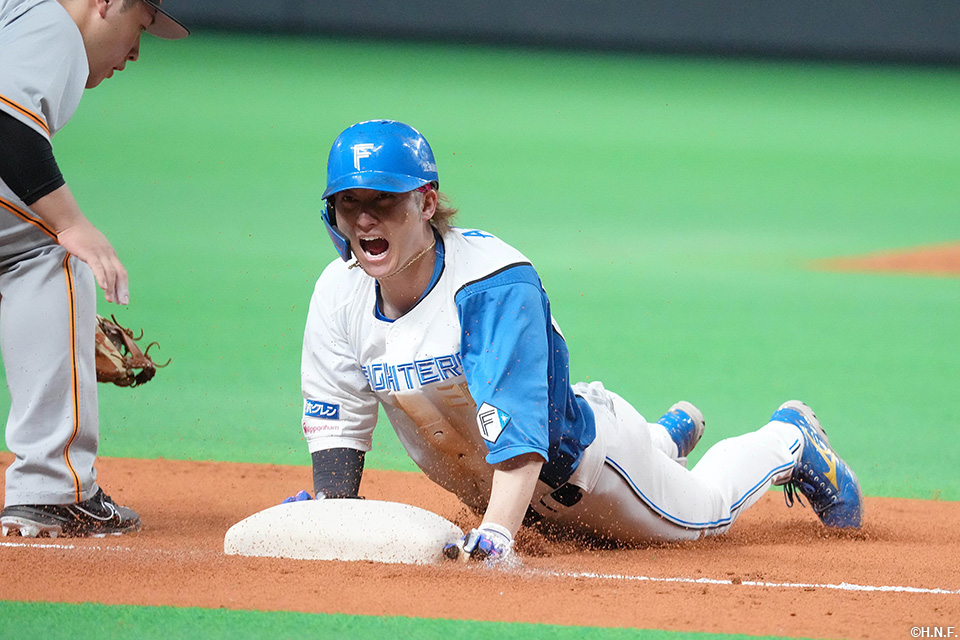 1番 松本剛 左安 外角低めのフォークをレフトへ打ってヒット 1塁 |