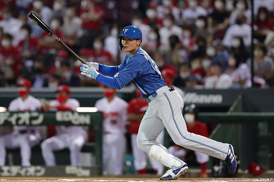 1番 松本剛 左2 内角低めのツーシームをレフトへ打ってツーベース 2塁 |