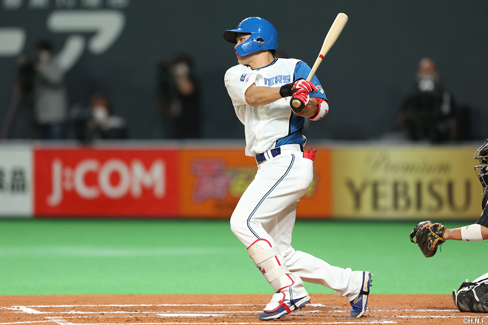 3番 松本剛 遊安 内角のストレートをショートへ打ってヒット 1塁 |