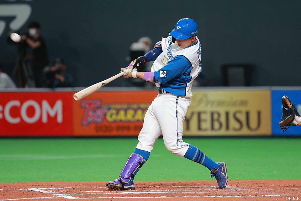 4番 松本剛 左安 ランナー2塁 外角低めのスライダーをレフトへ打ってヒット 1,3塁 |