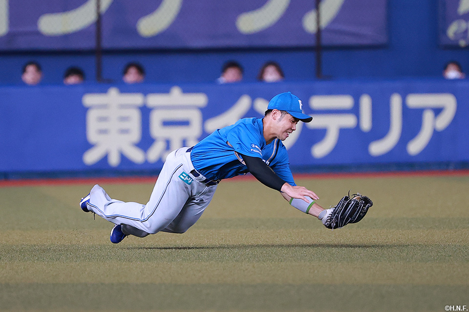 3番 松本剛 一邪飛 ファウルフライを山口(一)が捕球してバッターアウト 1アウト |
