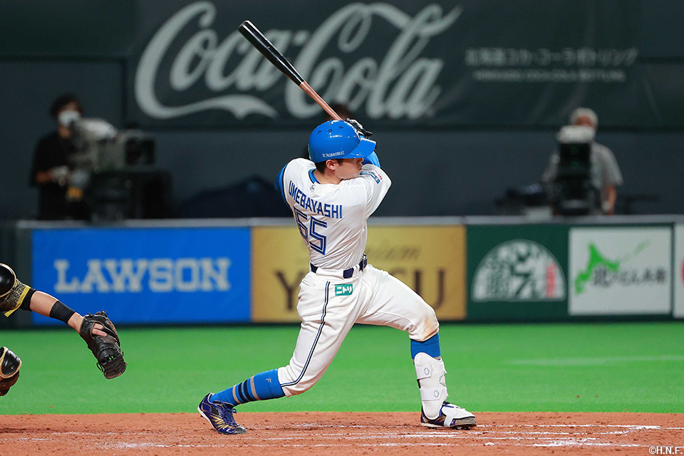 8番 梅林 左安 ランナー1,3塁 内角低めのストレートをレフトへタイムリーヒット! 1,2塁 日1-2西 ![]() 1