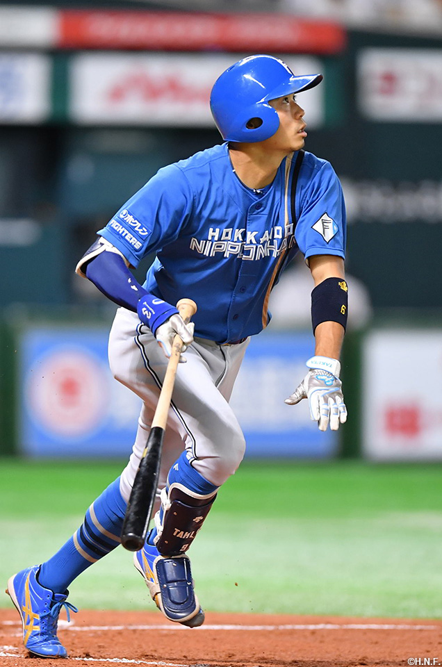 | 2番 松本剛 中安 外角低めのスライダーをセンターへ打ってヒット 1塁 | |