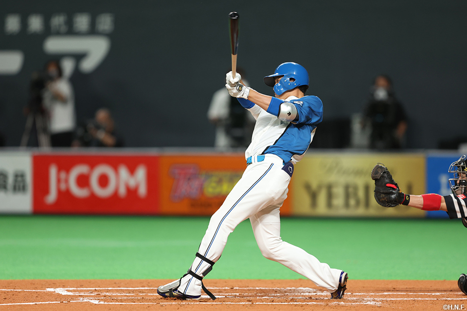 4番 松本剛 空三振 高めのスライダーを空振り三振 3アウトチェンジ |