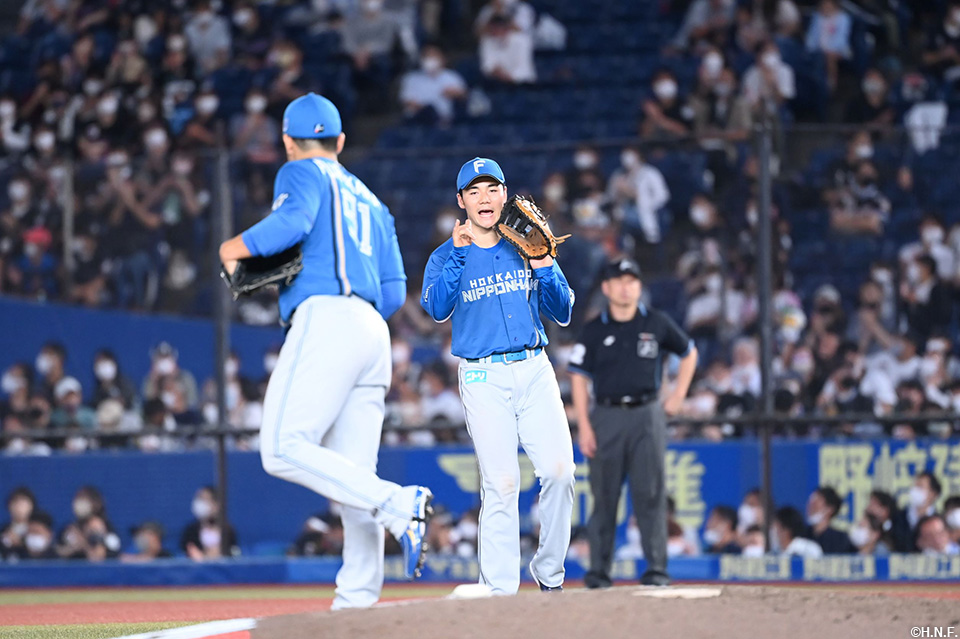 古川侑投手に声をかける清宮選手